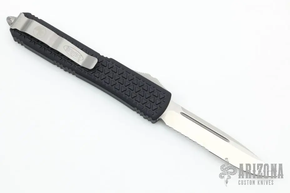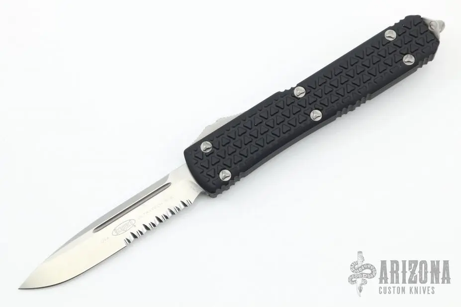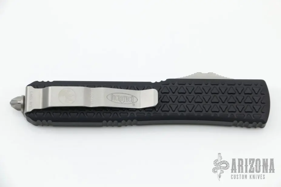 This Ultratech OTF automatic features a S/E stonewashed partially serrated blade. Stainless steel clip. Glass breaker. S/N 55611. Date 05/2015. Comes with original box and papers. Has a few light scuffs otherwise Excellent Condition.