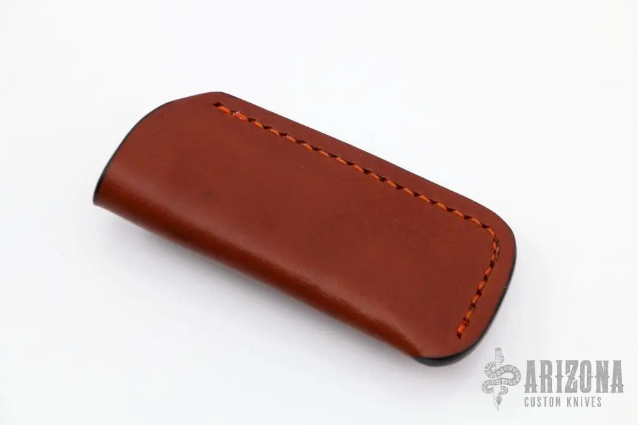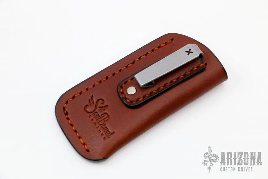 This Brown leather sheath by SoulBound Leather is made from premium full grain English Bridle Leather from Wickett & Craigย and has a stainless steel pocket clip. New from maker at the 2022 USN Gathering. 3.5″ tall and 1.5″ wide.