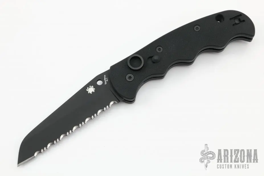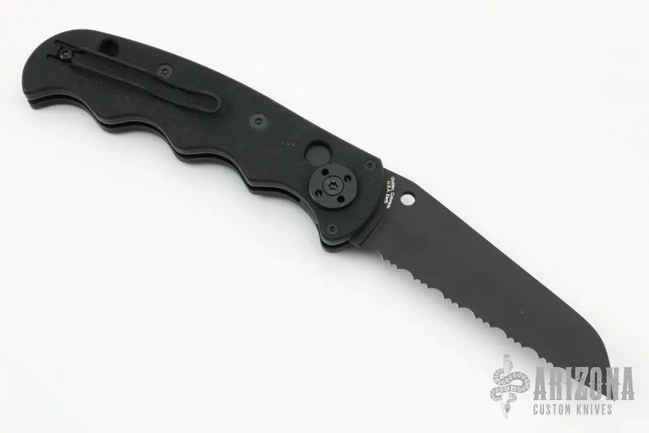 This Spyderco Autonomy features a black fully serrated blade, H-1 blade steel. The handle has black G-10 scales, black stainless steel liners, and a tip up reversible clip. Excellent condition. This knife is NOT a factory second. Comes with original box and papers.Â