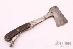 This sword is believed to be a civil war era sword. It features a carbon steel blade with natural patina, .203″ blade stock and 2.046″ blade depth, hidden tang construction. The handle has a forged steel guard, wood grip with brass fittings. The handle is a little loose, has scratches and patina, light pitting, otherwise good condition for its age.