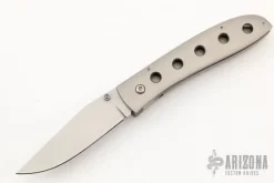 Kit made only a few of these Modified Model 4 Crosslocks during the late 1990’s – not only is this a very special style but as only a few were made, quite rare. The “A” or face side offers the clip point blade while the “B” or pocket clip side offers the chisel ground sheepfoot blade. Each opens smoothly and effortlessly with a fine lockup and easy linerlock closures. The handle has bead blasted titanium scales and liners, stainless steel backspacers and tip down clip. A unique design and a rare knife, which provides two different blade styles. Excellent condition.Β