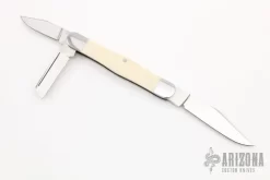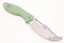 This Custom AD-15 from Andrew Demko features a San-Mai Damascus Blade with dual thumbstuds and a notched thumbrest. The handle has carbon fiber scales, bead blasted titanium frame with reversible titanium tip up clip and tumbled titanium backspacer. This knife features a unique “Top Lock” style locking mechanism. Includes a padded zippered case. Β Has some light scuffs on the clip and top lock otherwise the knife is in excellent condition.