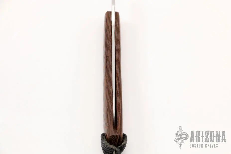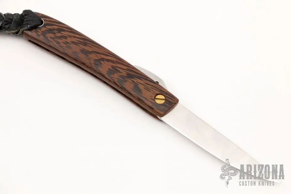 This Higonokami by Kei Goto features a VG-10 San Mai Damascus blade. The handle is one piece of Bombay Bocote with lanyard hole. Comes with a leather slip sheath. Excellent Condition.
