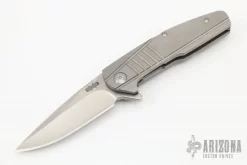This knife is a collaboration between Brous Blades and Turpin Knives, it is a limited edition of 500, this one is #355. It features a satin finished spear point blade with notched thumbrest and a flipper. The handle has a milled and bead blasted titanium frame, tip up bead blasted stainless steel clip, stainless steel lockbar insert, 3-piece backspacer made of black G-10 and stainless steel, lanyard pin at the rear. Comes with original box and papers. Excellent Condition. Β