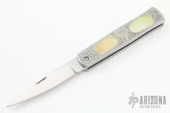 The knife was made for Don Mendleson, owner of Barrett~Smythe, then sold to Mr. Cole after the piece was engraved. Mr. Cole passed away and his son inherited his father’s knife collection, then took them to Gary Levine who bought the collection, and I acquired the knife from Gary Levine.
