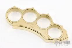 This Model #3, 4 finger brass knuckle by WK21 is made from solid .500β thick 360 Brass. The dimensions are approximately 2β x 4.625β x .5β with 1-inch diameter finger holes. Micro-brushed satin finish (fingerprint resistant). Woody Knuckle design and finishing process. Individually boxed. 100% Made in the USA. New from maker.