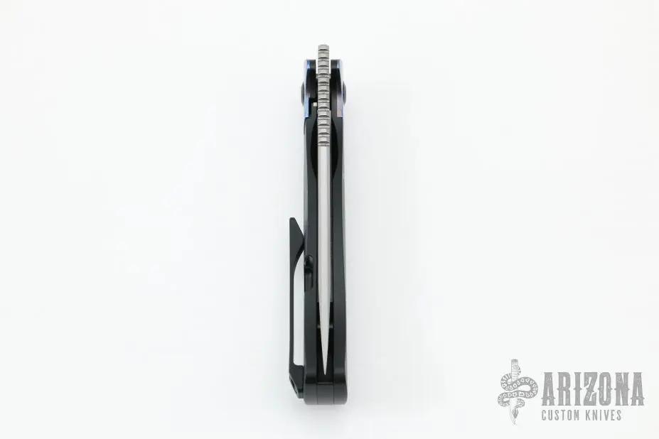 The tempting trailing point blade is epic and pairs well with the handle pattern. The titanium handle has perfectly curved contouring to fit any hand and creates a smooth hold while cutting or slicing. The front flipper has jimping that transitions to the spine of the blade for an even better grip on the Mujir. The frame lock is crisp and reassuring. To top off the design, a milled titanium, tip-up pocket clip.