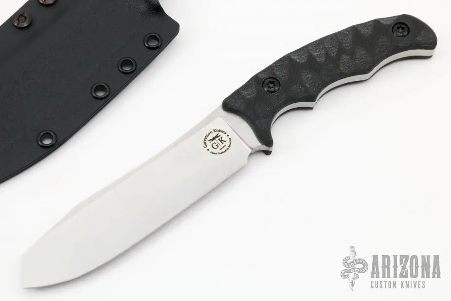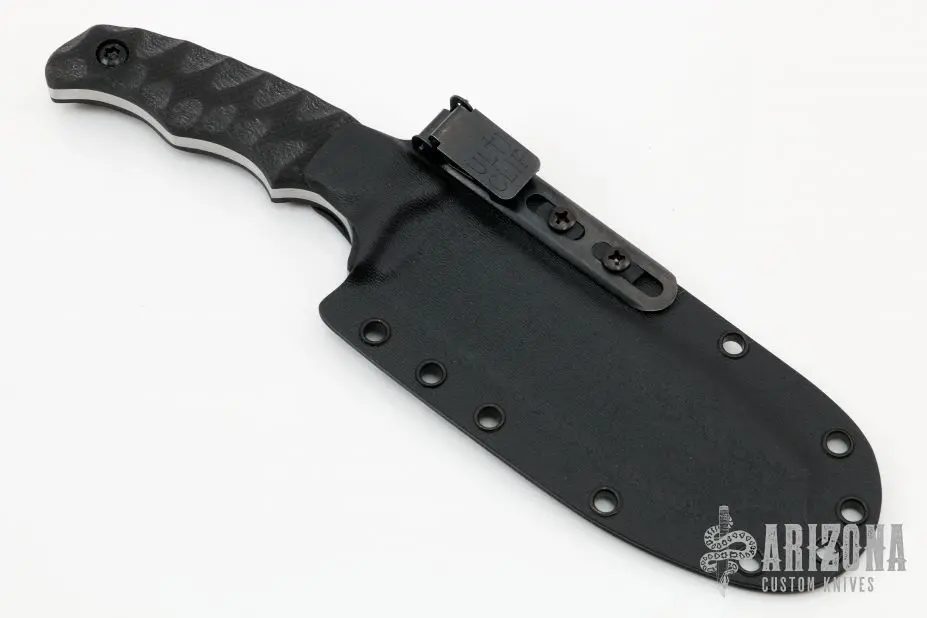 This No B.S. by Shaun Garretson features a satin finished blade with .172″ blade stock and 1.308″ blade depth, full tang construction with sculpted black G-10 scales. Comes with a kydex sheath with Ulti-Clip, and a zippered case. New from maker.