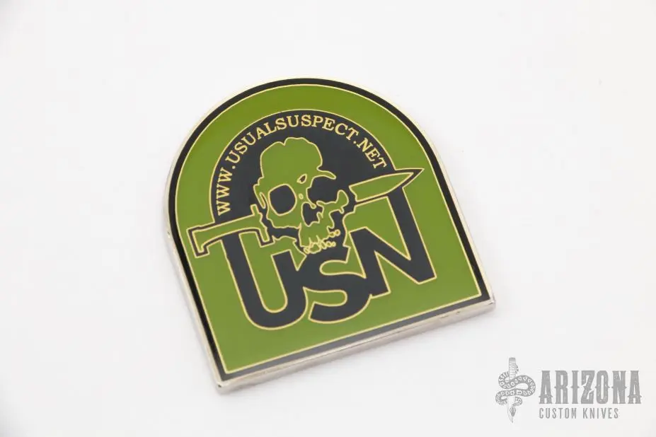 Original USN Challenge Coin with a custom sharkskin case. Excellent condition. “KEN” on the coin.