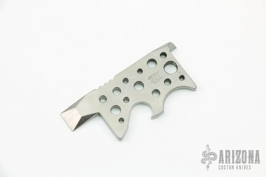 This Perferated Prytool is made from titanium. It has a bottle opener, prybar, small flathead, notched thumbrest. Excellent condition.Β