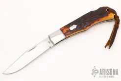 This Lockback from Tobin Hill features a hand rub satin finished clip point blade with nail nick. The handle has pinched and threaded stainless steel bolsters with stag covers and a stainless steel escutcheon, stainless steel backspacer/lockbar. Includes padded and zippered case. Light scratches are visible on the blade otherwise the knife is in good condition. Β