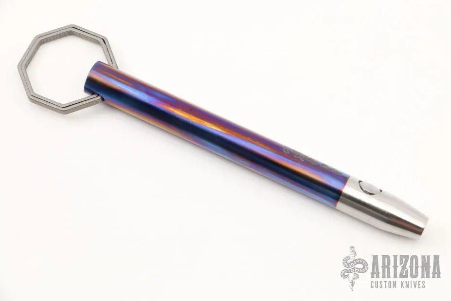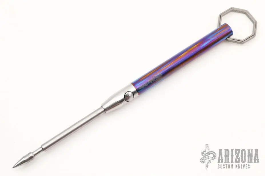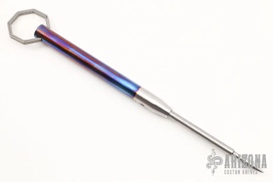 Titanium Kubaton w/ Gravity OTF Icepick. Comes with leather slip sheath. New from maker at the 2022 USN Gathering.