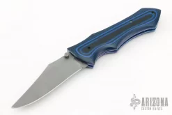 This left handed scale release is #4 of 30. Features a bead blasted blade with single thumbstud, black/blue G-10 scales, anodized titanium liners and a bead blasted stainless steel backspacer. Nice detent, lockup and blade seating. Excellent condition.