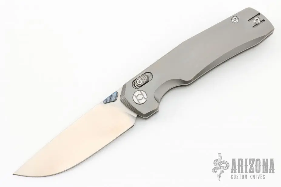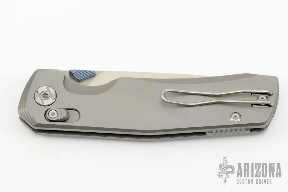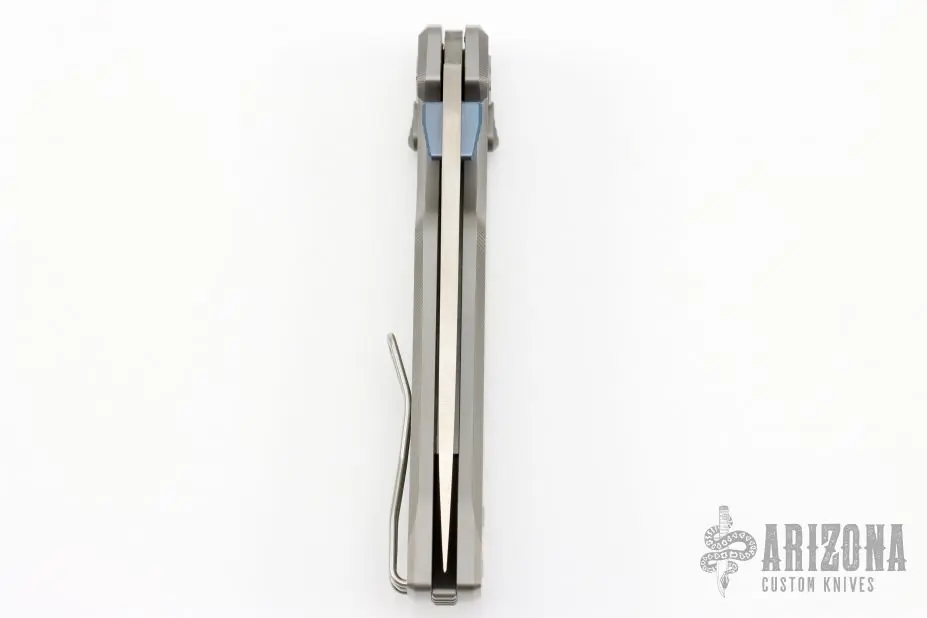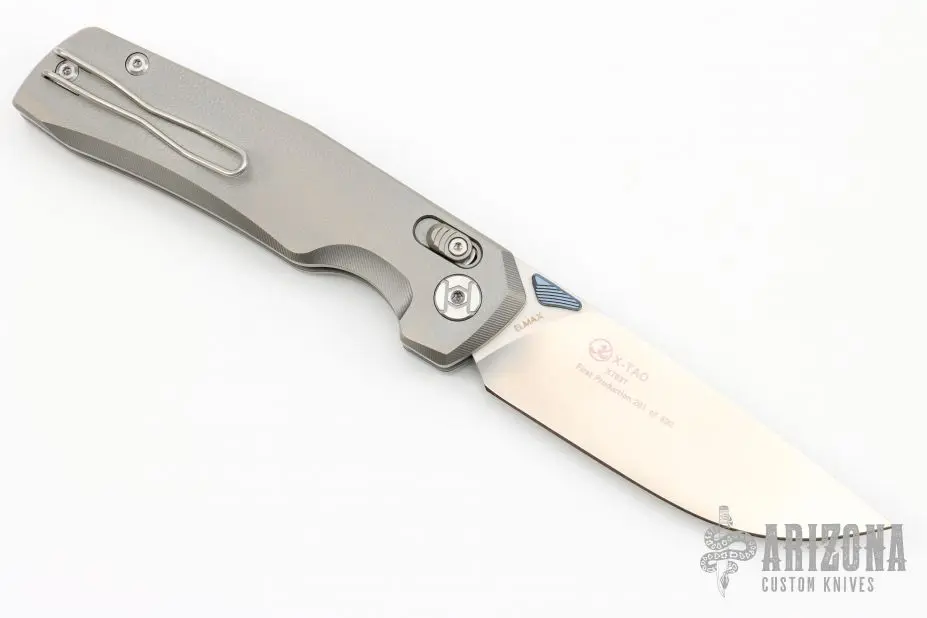 This X-Tao folder by Kunwu Knives features a satin finished blade with dual anodized titanium thumbstuds. The handle has a textured titanium frame with tip up reversible clip, has a axis style lock. Comes with original box and papers. Excellent condition. First Production #281 of 400