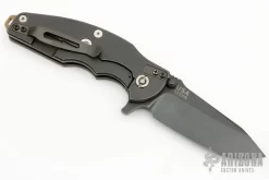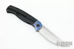 This XM-18 Spanto by Rick Hinderer Knives features a 3.5″ acid and stonewash blade, notched thumbrest and dual thumbstuds. The handle has an anodize and stonewash finish titanium handle/clip. Clip can be mounted for tip up or down carry. Nice lockup, and detent. Includes the original box. Has scuffs and scratches, otherwise great condition.Β